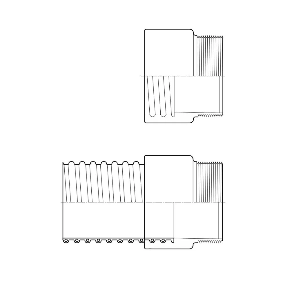| Für Schlauch Innen-Ø [mm]50 | Außengewinde [Zoll]2" | Einschraubtiefe Schlauch [mm]45 | Gewindelänge [mm]23,8 | Gesamtlänge [mm]86 | Gewicht [kg]0,150 |